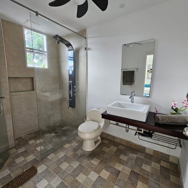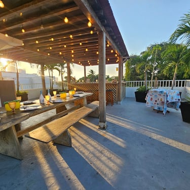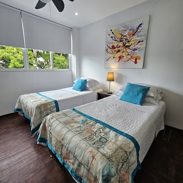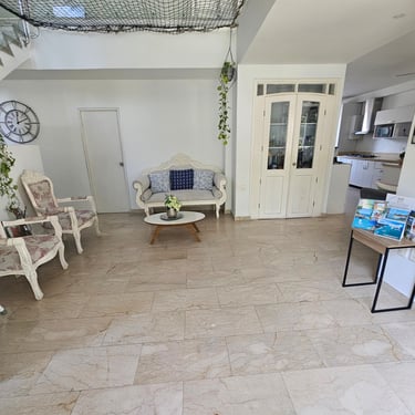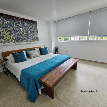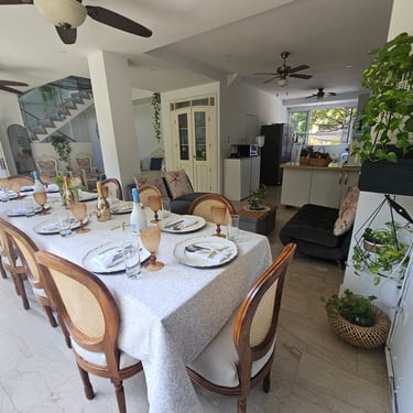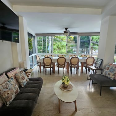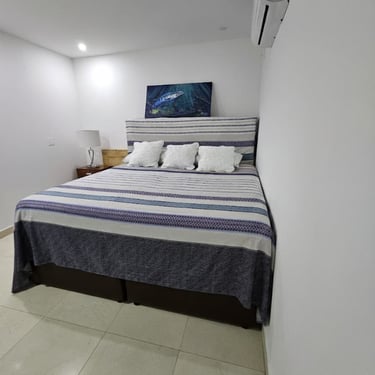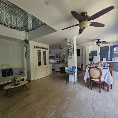Mayis Home, with its prime location, features 6 air-conditioned bedrooms with single, double, and multiple occupancy options, depending on guest requirements. The house has 6 full bathrooms, ceiling fans and portable fans in the common areas (living room, dining room, and foyer), Wi-Fi throughout the house, and a pool for your enjoyment at any time (day or night). We also have a spectacular rooftop terrace where you can contemplate Cartagena's beautiful sunsets while enjoying a refreshing drink. The rooftop is equipped with a refrigerator and amenities to make your stay unforgettable.